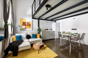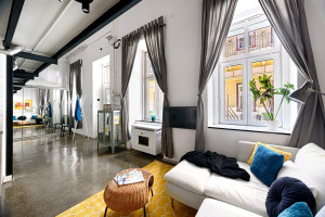 A Corvin sétány szomszédságában, mégis csendes, zöld udvarra néző környezetben várja új tulajdonosát ez a különleges atmoszférájú, teljeskörűen felújított, design loft stílusú 42 nm-es, 2 szobás lakás.
