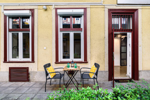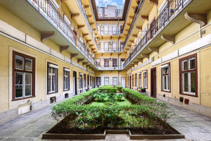 Rendezett, zöld belső udvar, valódi kis oázis a város forgatagában.
